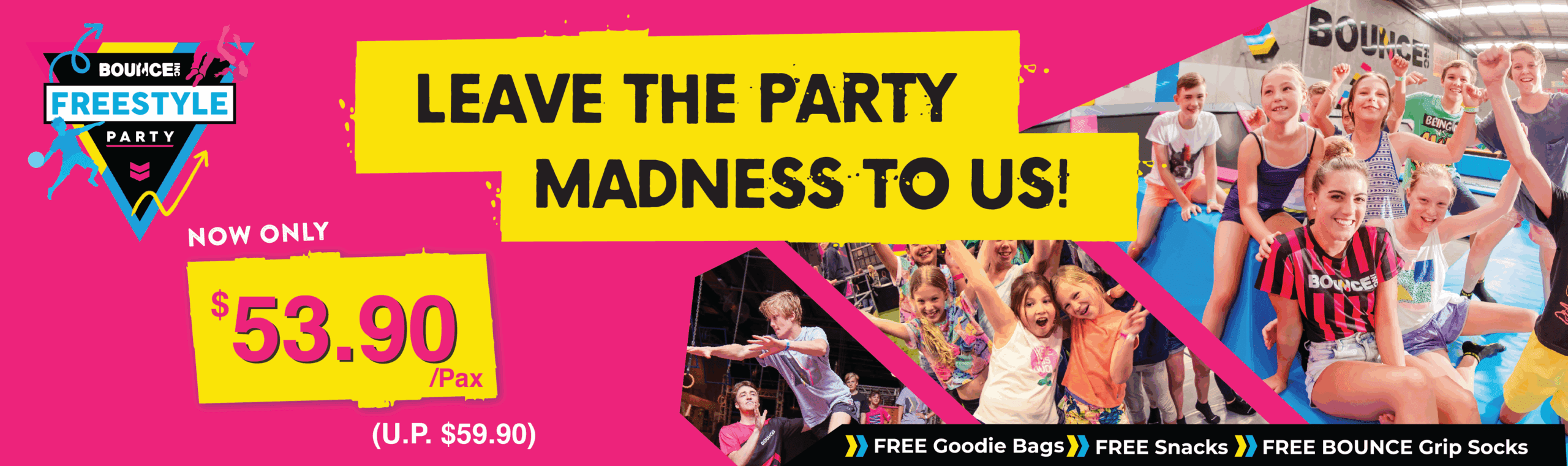 Call 68162879 or email parties@bounceinc.com.sg or click Book Now to book your party!